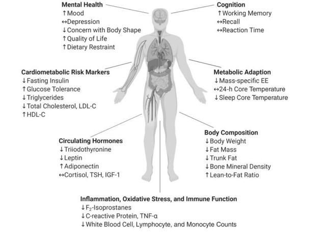 然而,动物实验的良好结果并不一定对人类适用。因此,这项临床研究共招募了218名年龄在21-50岁,BMI在22.0~28.0kg/m2的健康人,试验组参与者每天的热量摄入降低14%,对照组饮食照常,历时两年,在第12个月及24个月收集参与者的血液、脂肪等样本,并测量各项指标。